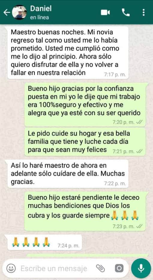 Descubri que mi pareja tenia amante y Me encontré en una situación difícil y estaba considerando alejarme de mi pareja. Pero el maestro me ayudo a resolver el problema y avanzar en nuestra relación. El maestro fue extremadamente profesional y actuó rápidamente y me ayudo con un amarre de amor para que mi pareja me volviera a querer, Y funciono, Muchas gracias, Lo recomiendo